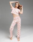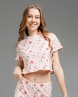 Топ футболка піжами SABRINA у ніжному рожевому кольорі з делікатним квітковим принтом це легкість і комфорт у домашніх моментах. Мʼяка тканина приємна до тіла, а вільний крій забезпечує зручність під час сну та відпочинку.