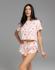 Шорти піжами SABRINA у ніжному рожевому кольорі з делікатним квітковим принтом це легкість і комфорт для домашніх моментів. Мʼяка тканина приємна до тіла, а вільний крій забезпечує зручність під час сну та відпочинку.